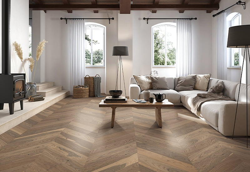 Sàn gỗ cứng Chevron được thiết kế