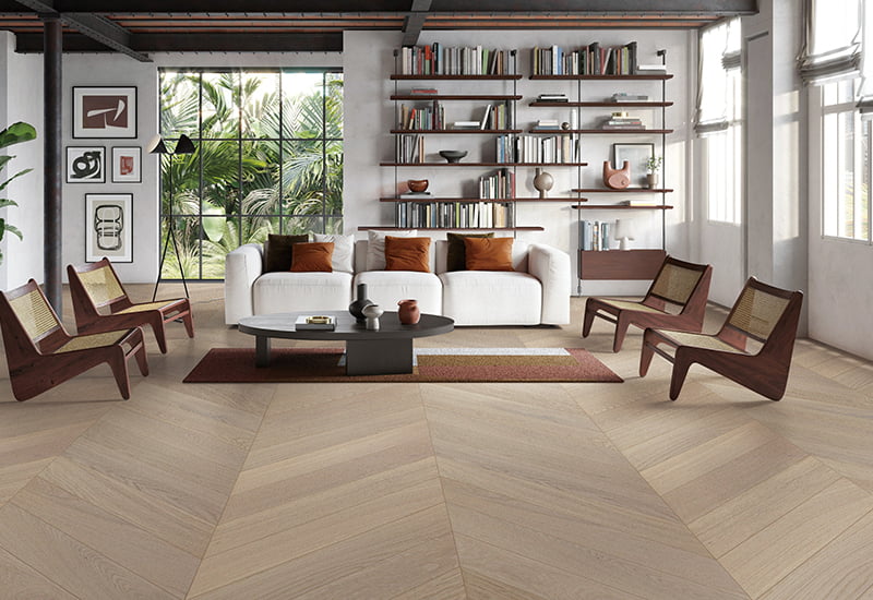 Nâng cao nội thất của bạn với sàn gỗ Vô hình LA AB Chevron. Sàn nhà tuyệt đẹp này có bề mặt chải nhẹ giúp tăng cường kết cấu tự nhiên và hạt của gỗ, tạo ra một cái nhìn mềm mại, hấp dẫn làm tăng thêm sự ấm áp và tinh tế cho bất kỳ căn phòng nào. Kết thúc sơn mài vô hình cung cấp vẻ ngoài mịn màng, mờ, cho phép vẻ đẹp đích thực của gỗ tỏa sáng mà không có bất kỳ độ bóng nào, cho một sự thanh lịch tự nhiên hơn, được đánh giá cao. Lớp phủ sơn mài UV không chỉ bảo vệ gỗ khỏi hao mòn mà còn đảm bảo vẻ đẹp của nó kéo dài trong nhiều năm, trong khi vẫn duy trì bề mặt bảo trì thấp, dễ làm sạch. Cho dù bạn đang nhắm đến một cảm giác hiện đại hay truyền thống, thì Lacquer-La AB Chevron Sàn mang lại một giải pháp chất lượng cao, lâu dài mang lại sự thanh lịch và độ bền cho bất kỳ không gian nào.